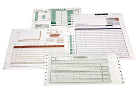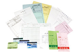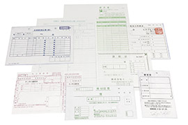 | ■企業に必要な伝票類 請求書・納品書など1枚物から複写伝票物、 ミシン、Noなどの加工も各種対応できます。 |